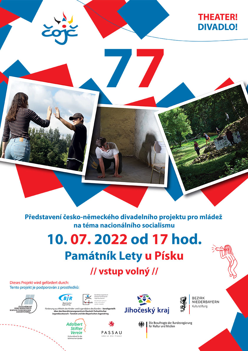 V česko-německém divadelním projektu "77" se budeme dva týdny zabývat tím, jak a zda si chceme tuto krutou dobu připomínat. Navštívíme pamětní místa v Pasově a Letech u Písku a společně se zamyslíme nad tím, co taková místa tvoří a zda existuje rozdíl v německé a české paměti. Ze společných zážitků vznikne česko-německé představení.