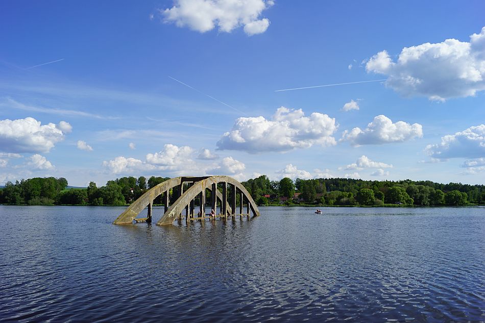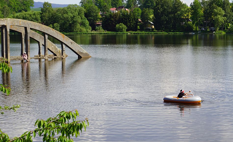 Endlich komplett, begeben wir uns auf die letzte Etappe zu unserem Ziel: dem Stausee in Jesenice. Es ist nur eine Zugstation weit weg und wir müssen nicht weit laufen. Von der Zugstation aus rechts gehen wir nicht zum Campingplatz, sondern an den Containern rechts die Straße entlang, biegen dann links zum See ein und befinden uns schon an der Picknickstelle mit Blick auf die Brücke im See. Als erstes packen wir unser Essen aus und hören Musik von einer deutschen Künstlerin, deren Namen ich schon wieder vergessen habe. Sorry Iva und Lou! Aber es war wirklich sehr schön.