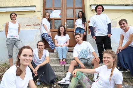 Wir treffen also in dieser „Stadt“ ein. Es gibt nur ein Gleis und „so etwas ähnliches wie einen Bahnsteig“ (Zitat einer Teilnehmerin). Dort erwarten uns auch schon die Leiter*innen und bringen uns zu unserer Unterkunft für die Woche. Wir schlafen in einem verlassenen Schulgebäude. Nach dem Niedergang von Plesnás Fabriken verließ ein großer Teil der Anwohner*innen die Stadt, viele Gebäude stehen seitdem leer. In einem Klassenzimmer ist noch die Tafelanschrift von damals zu lesen, der Garten ist verwildert und auch innen hat es bestimmt schon einmal bessere Tage gesehen, für unsere Zwecke ist es aber ideal.![]()