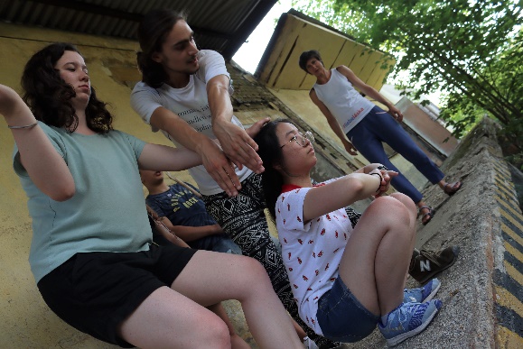 Der Tag heute beginnt früh. Und intensiv. Wir haben den Schlüssel zu einer verlassenen Fabrik erhalten und dürfen in ihrem Innenhof proben und aufführen. Noch vor dem Frühstück machen wir uns dorthin auf und proben ein paar klassische Theaterübungen. Die Aufführung naht, also gibt es heute nicht mehr so viel Szenenarbeit. Nur einige historische Fotos stellen wir noch nach, ansonsten konzentrieren wir uns auf die Verbesserung bereits etablierter Szenen.