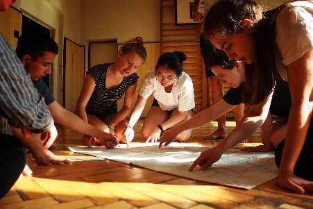 Danach tauchen wir tief in die Szenenarbeit ein. In zwei Gruppen besuchen wir verschiedene Fabriken in der Stadt und konzipieren am Standort neue Szenen, aufbauend auf dem Material, das wir bisher gesammelt haben. Heraus kommen dabei unter anderem ein Klangbild, das aus den Tönen der Fabrik besteht und ein Monolog aus der Sicht einer fiktiven Fabrikarbeiterin. Die Hitze (Temperaturen deutlich über 30 Grad waren in der Woche keine Seltenheit!) treibt uns aber schnell wieder in die kühle Schule. Unsere Arbeit ist aber noch nicht vorbei, wir beschäftigen uns noch mit einigen historischen Dokumenten und versuchen, das Thema „Einsamkeit“ in Texten festzuhalten.