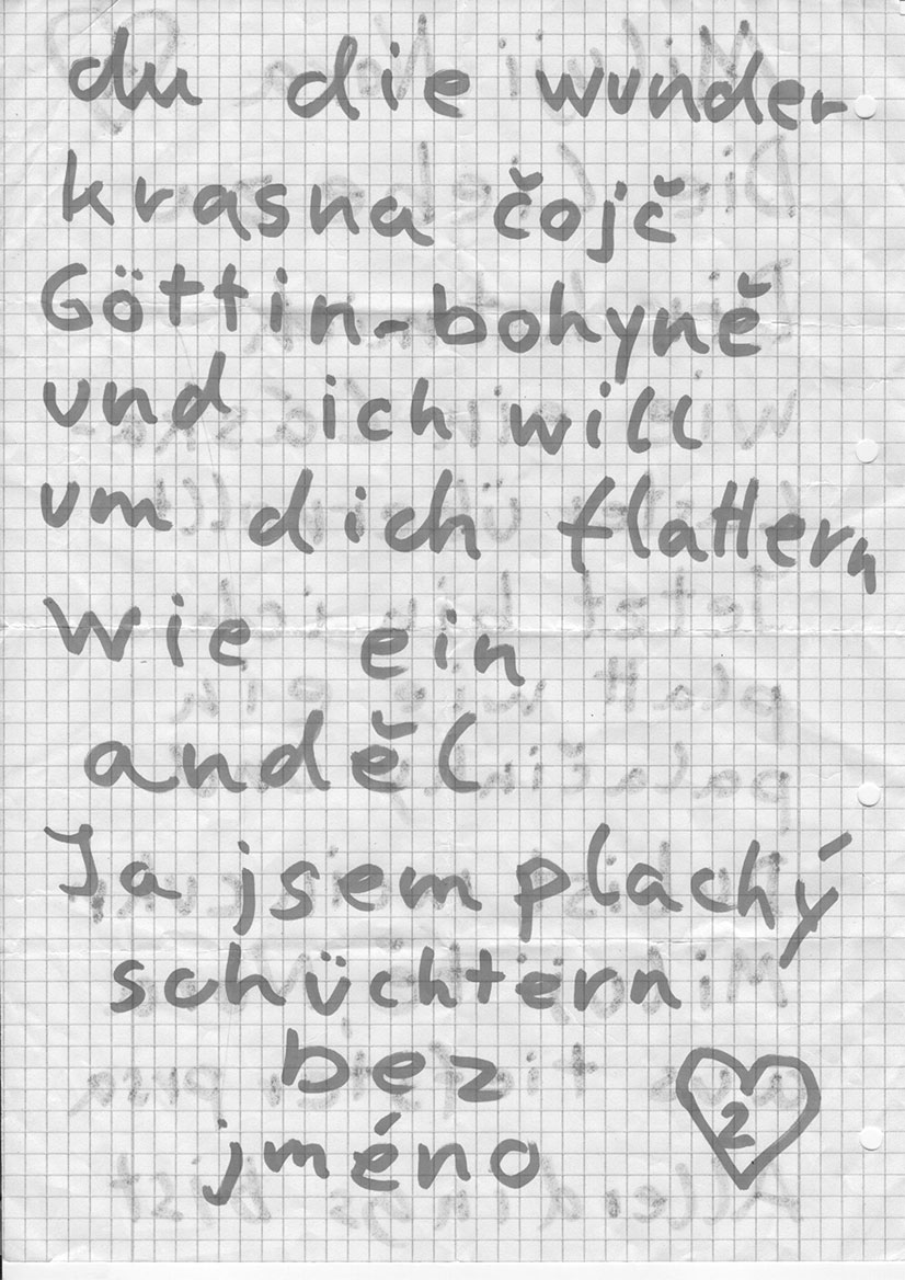 du die wunderkrasna čojč Göttin-bohyně und ich will um dich flattern wie ein anděl